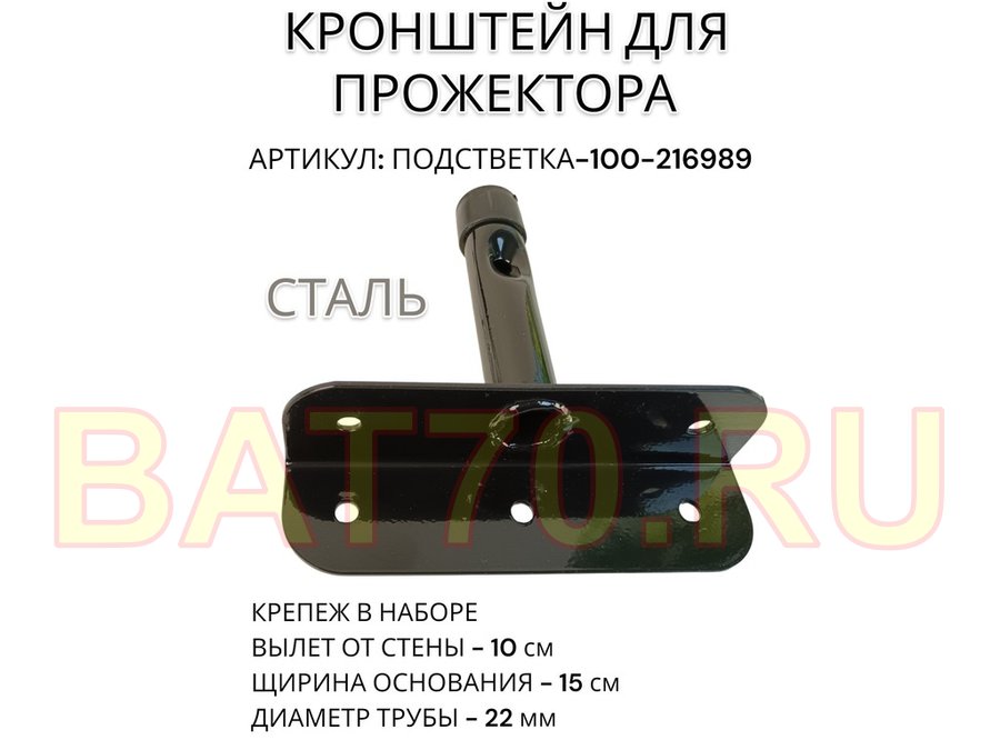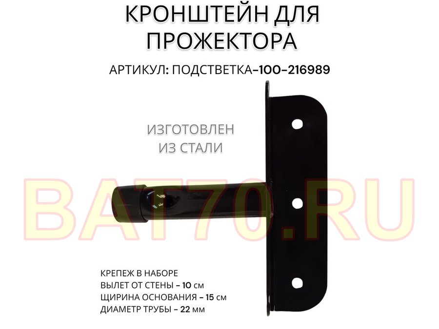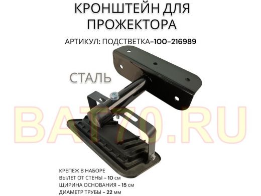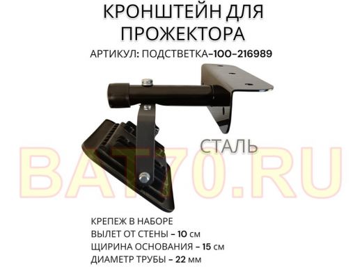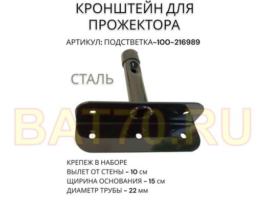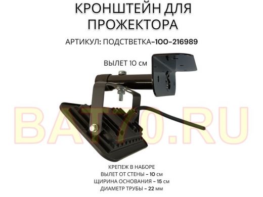 Кронштейн для прожектора "ПОДСВЕТКА- 100-216989" черный с уголком на рекламные щиты, вылет 0,1м