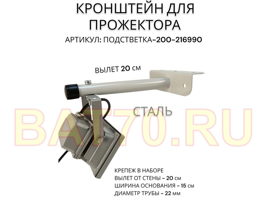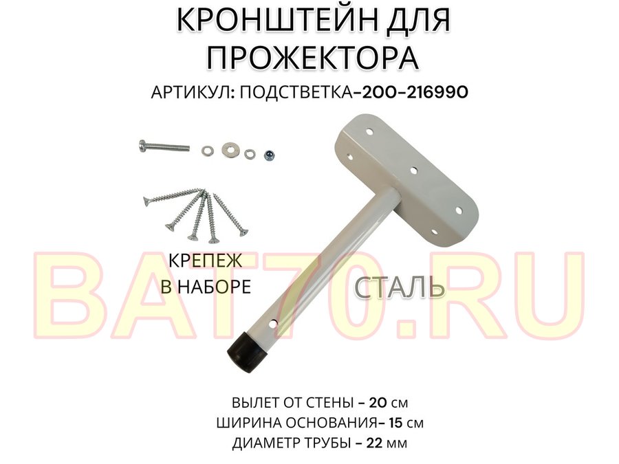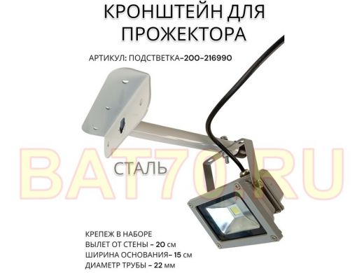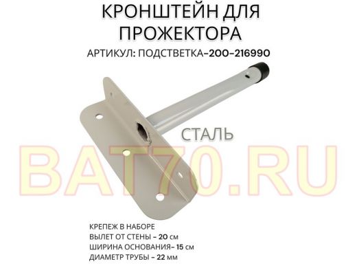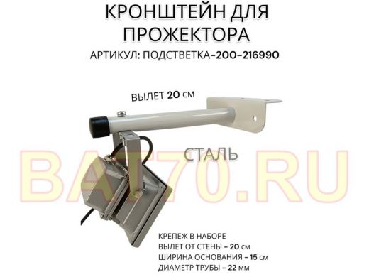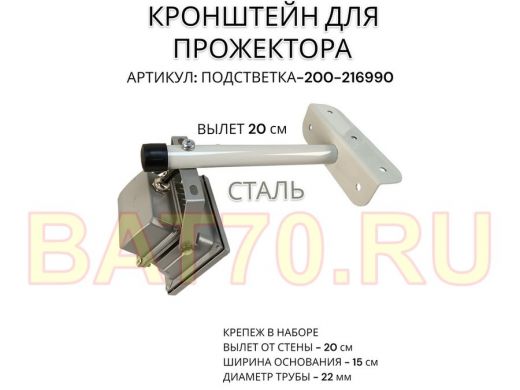 Кронштейн для прожектора "ПОДСВЕТКА- 200-216990" серый с уголком на рекламные щиты, вылет 0,2м