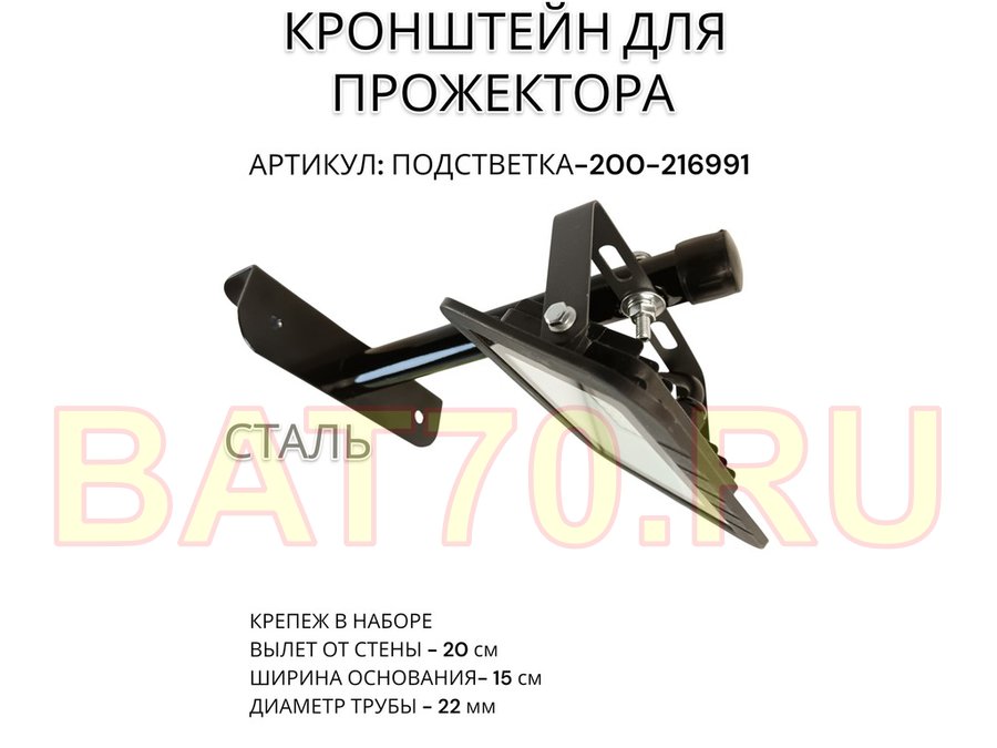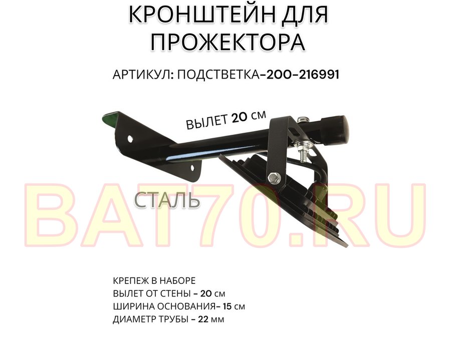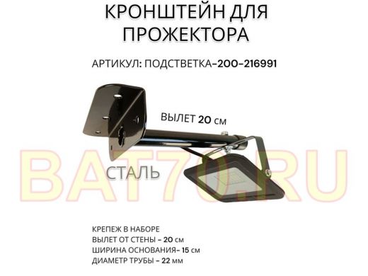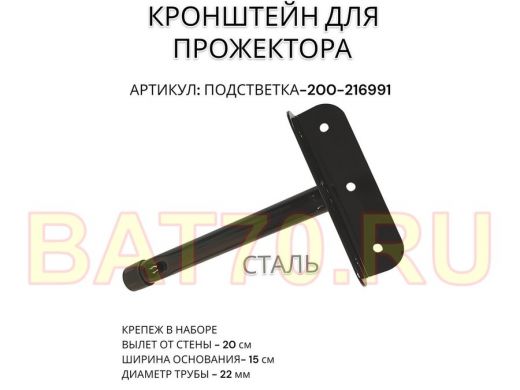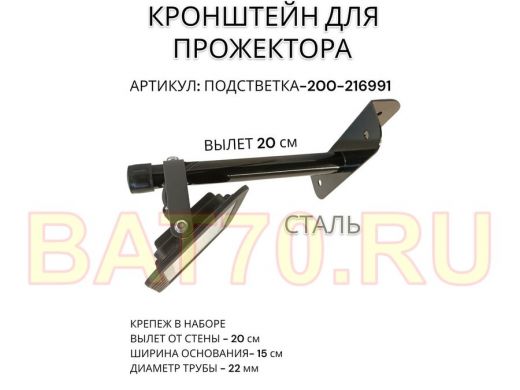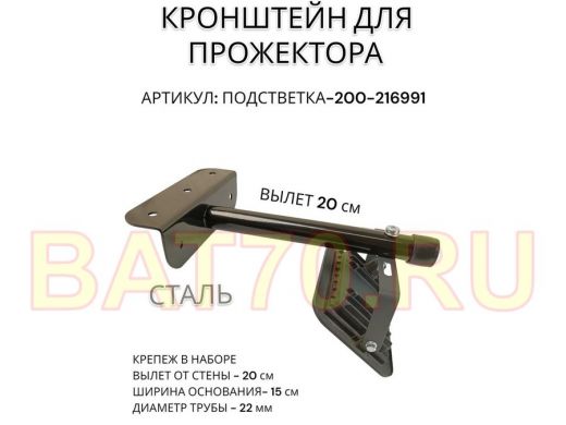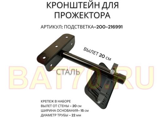 Кронштейн для прожектора "ПОДСВЕТКА- 200-216991" черный с уголком на рекламные щиты, вылет 0,2м