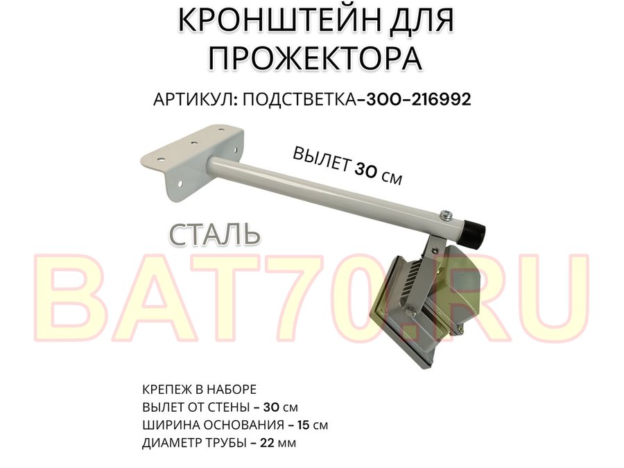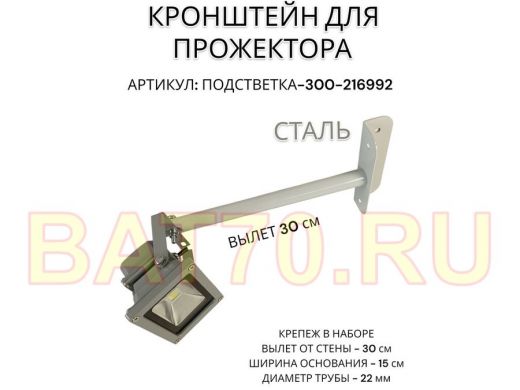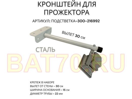 Кронштейн для прожектора "ПОДСВЕТКА- 300-216992" серый с уголком на рекламные щиты, вылет 0,3м