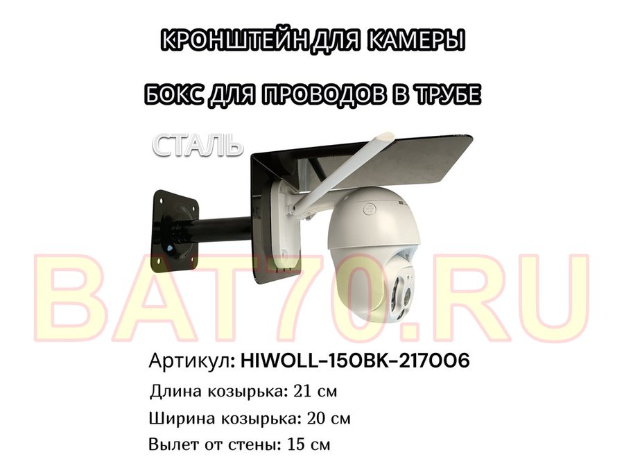 В корзину Купить в 1 клик Кронштейн для камеры и прожектора с козырьком "HIWOLL-150BK-217006" черный, вылет 15см, сталь