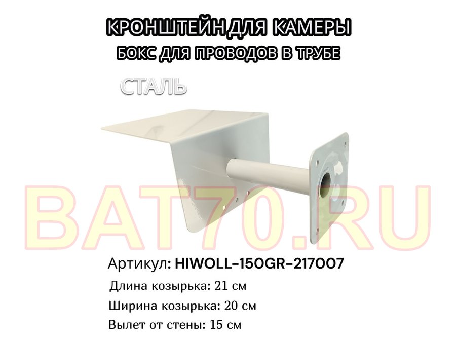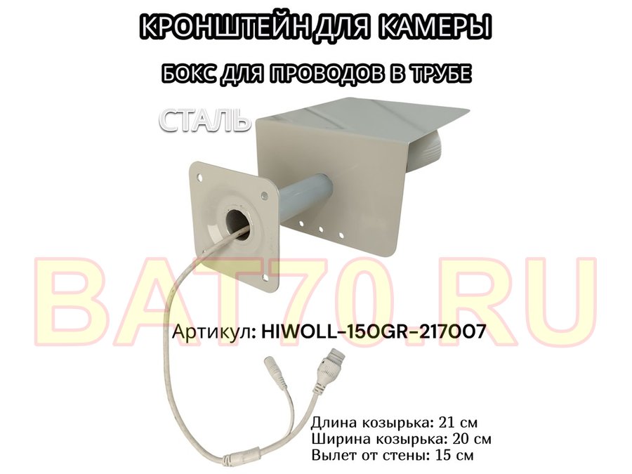 Кронштейн для камеры и прожектора с козырьком "HIWOLL-150GR-217007" серый, вылет 15см, сталь