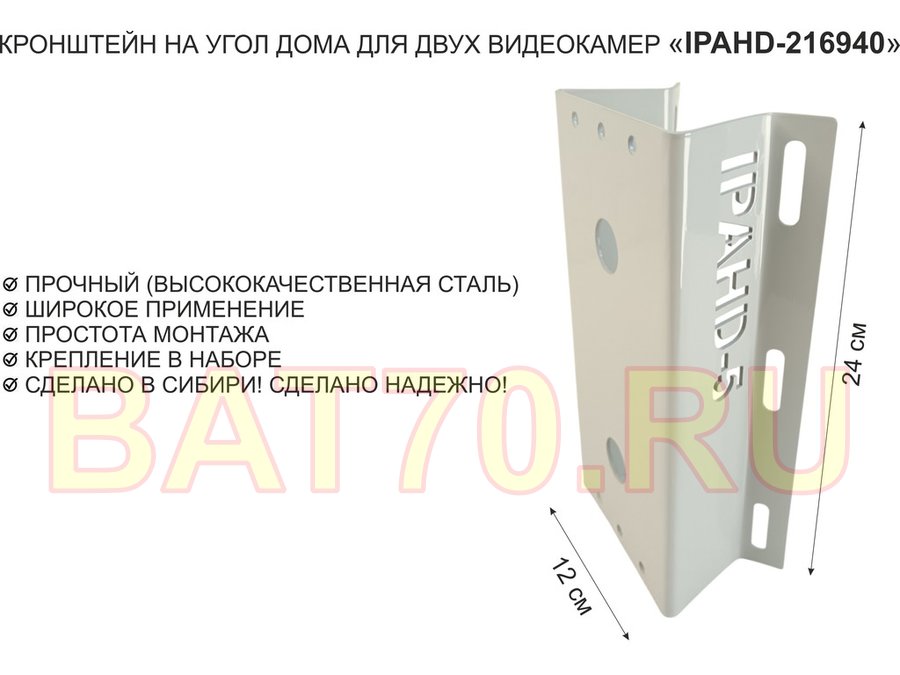 Кронштейн на угол дома для двух камер видеонаблюдения, 2 отверстия "IPAHD5-216942" оцинкован,24х12см