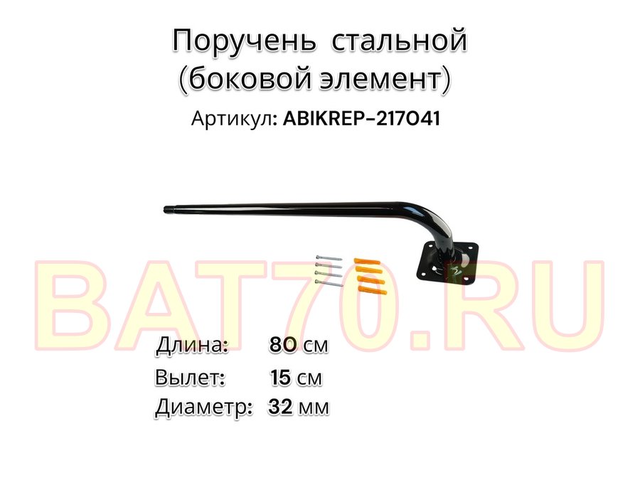Поручень пристенный для домов снаружи и внутри, ширина 67см высота 25см "ABIKREP-216917" черный,32мм