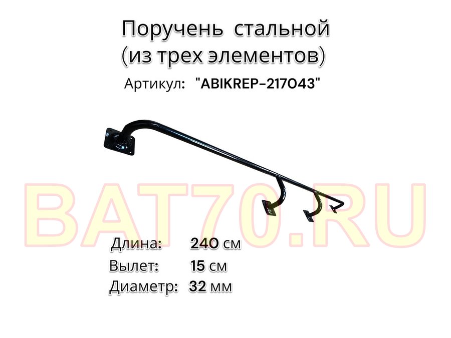Поручень пристенный для зданий,черный, длина 240см вылет 15см "ABIKREP-217043" 4 опоры, диаметр 32мм