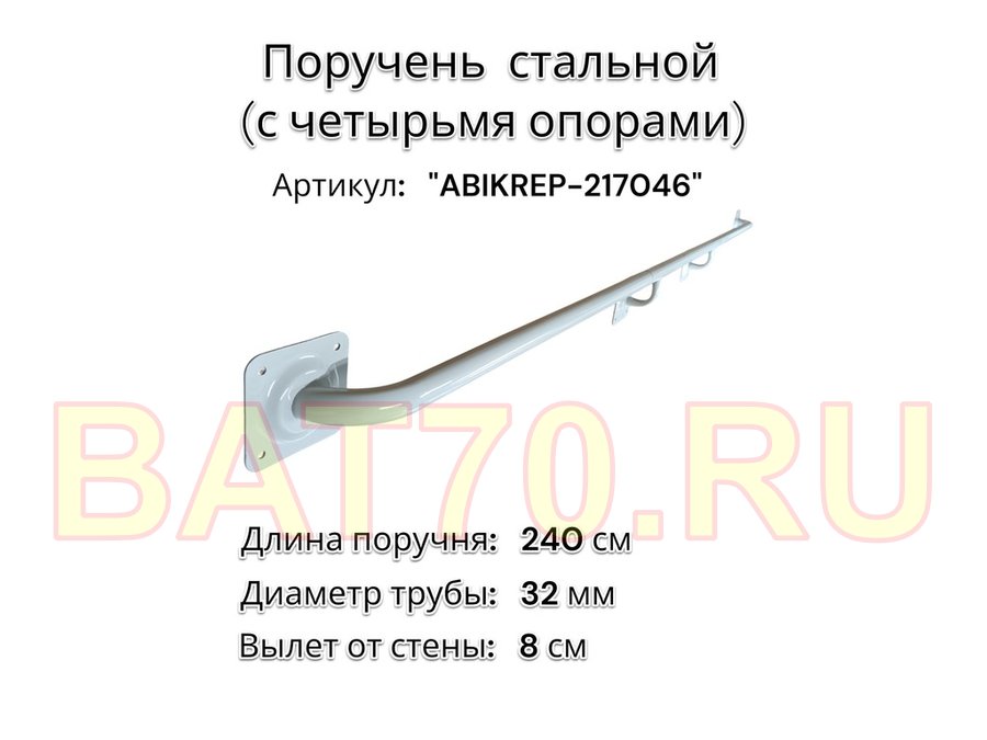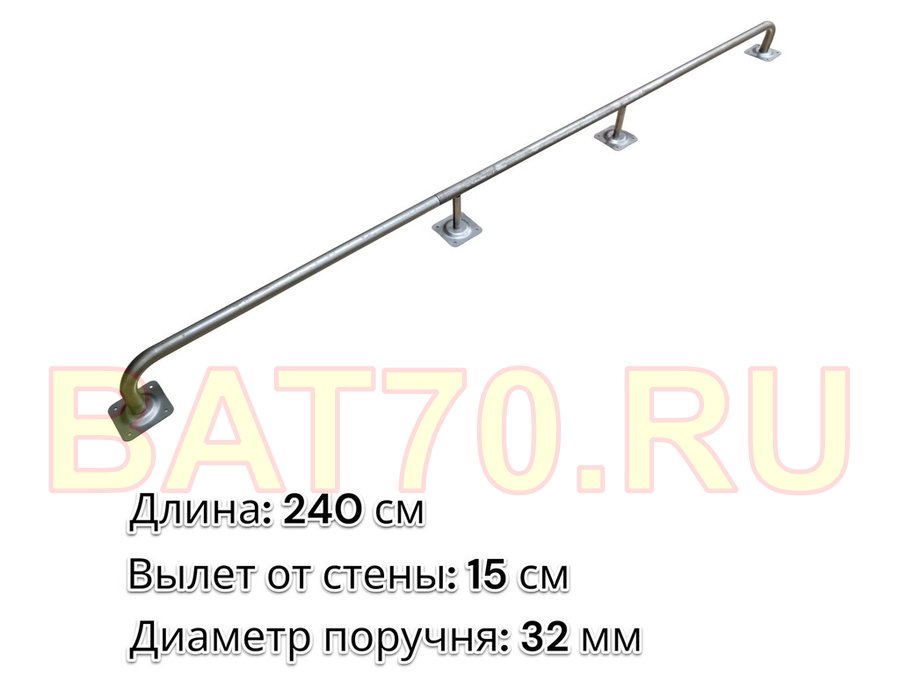 Поручень пристенный для зданий, длина 240см вылет 15см "ABIKREP-217055" серый, 4 опоры, диаметр 32мм